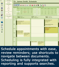 Our EMR (EHR) Practice Management systems support: encryption, user profiles, charts, custom reports, insurance, billing, HR, schedules, searches, and much more.